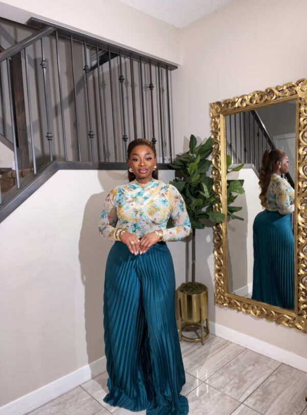 This premium modular two-piece set includes a beautifully tailored top and a flowing pleated pants crafted with high-quality fabric and refined finishing. Each piece is designed to be worn together or styled separately, allowing you to create multiple looks without sacrificing elegance. This set has a skirt set as well
