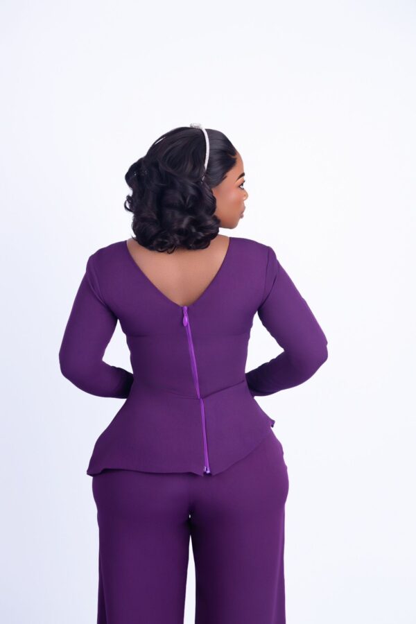 Bold. Sculpted. Unforgettable. The Viora Plum Bloom Luxe Set is where daring elegance meets structured glamour. Designed in a deep royal plum hue, this standout two-piece set features a curve-contouring peplum top with rhinestone-trimmed cutouts, flared sleeves, and a dramatic V-back with a concealed zipper.